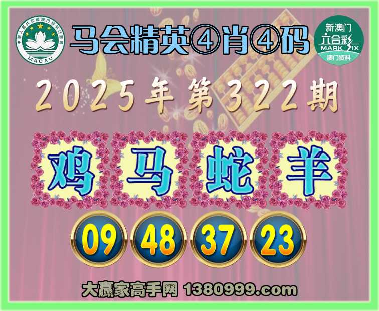 322期:【马会精英】 🥼④肖④码🥼【鸡马蛇羊】【09.48.37.23】开:羊47准
