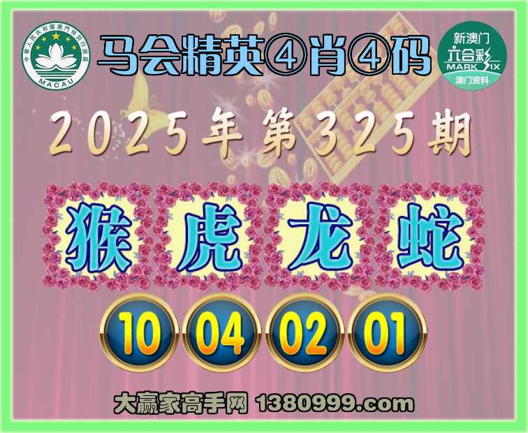 325期:【马会精英】 🥼④肖④码🥼【猴虎龙蛇】【10.04.02.01】开:虎04准