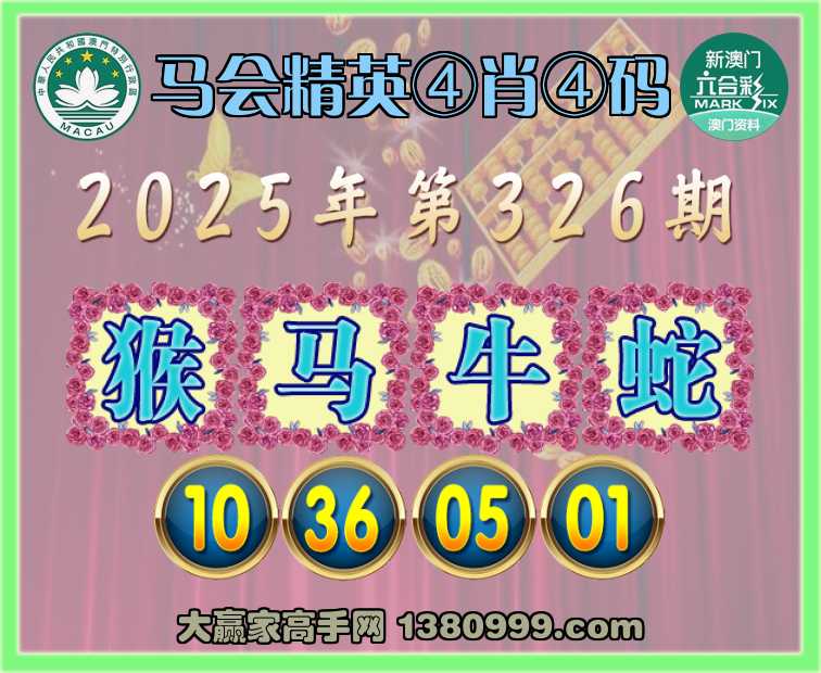 326期:【马会精英】 🥼④肖④码🥼【猴马牛蛇】【10.36.05.01】开:猪19错