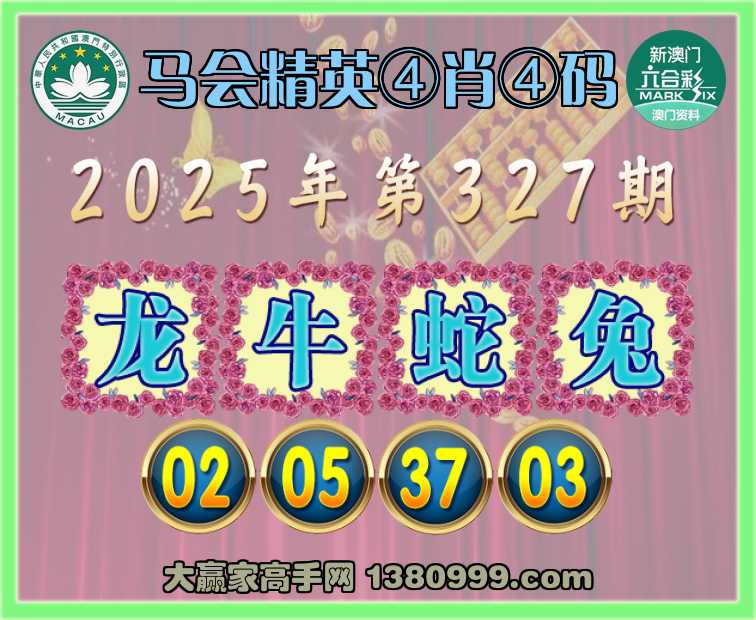 327期:【马会精英】 🥼④肖④码🥼【龙牛蛇兔】【02.05.37.03】开:蛇37准