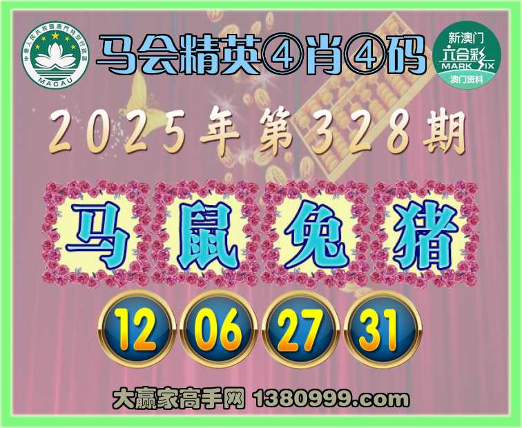 328期:【马会精英】 🥼④肖④码🥼【马鼠兔猪】【12.06.27.31】开:兔03准