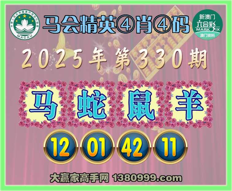 330期:【马会精英】 🥼④肖④码🥼【马蛇鼠羊】【12.01.42.11】开:马36准