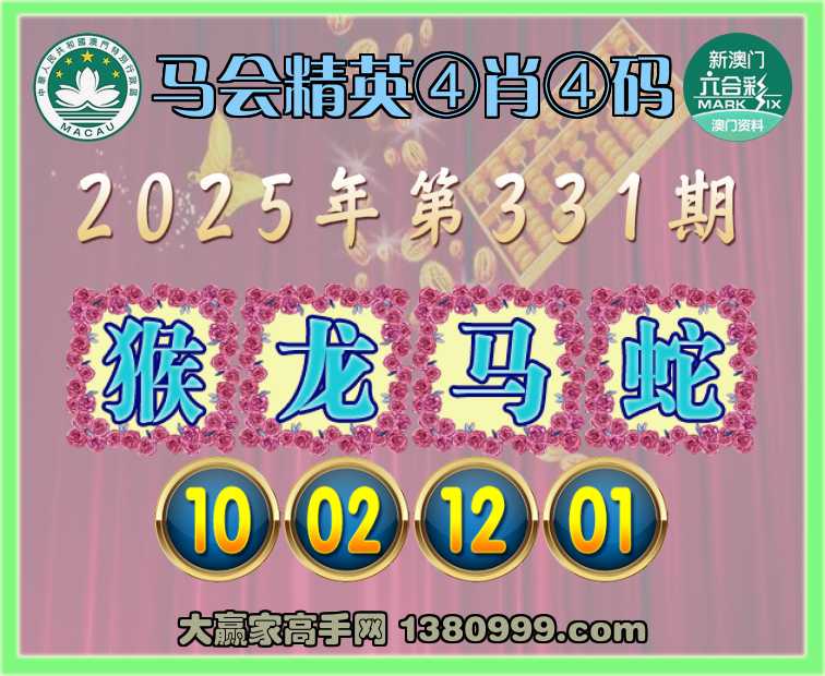 331期:【马会精英】 🥼④肖④码🥼【猴龙马蛇】【10.02.12.01】开:龙26准