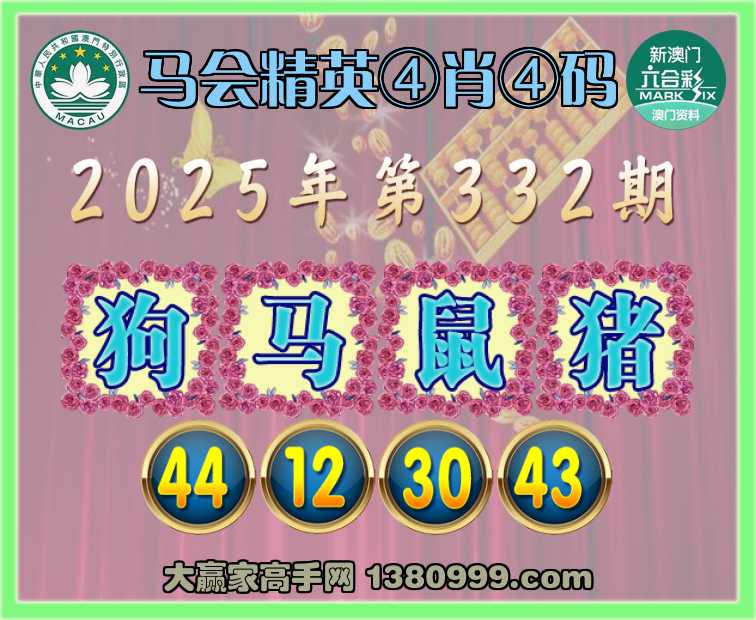332期:【马会精英】 🥼④肖④码🥼【狗马鼠猪】【44.12.30.43】开:龙26错