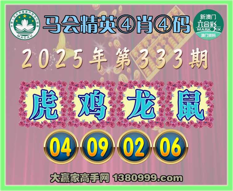 333期:【马会精英】 🥼④肖④码🥼【虎鸡龙鼠】【04.09.02.06】开:鼠06准