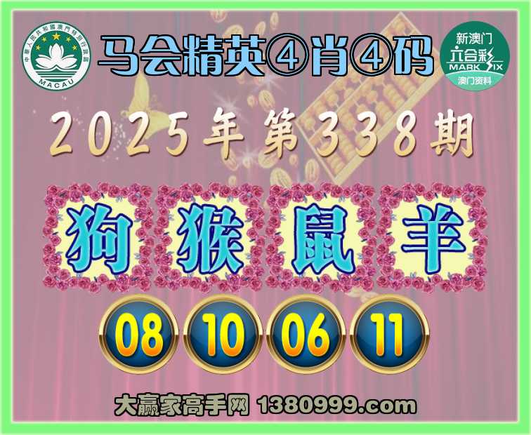 338期:【马会精英】 🥼④肖④码🥼【狗猴鼠羊】【08.10.06.11】开:狗08准