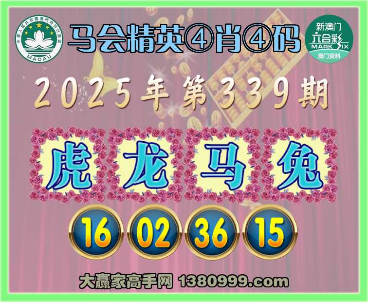 339期:【马会精英】 🥼④肖④码🥼【虎龙马兔】【16.02.36.15】开:马48准