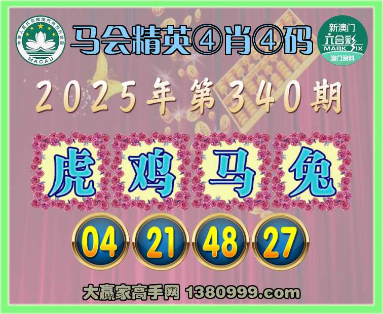 340期:【马会精英】 🥼④肖④码🥼【虎鸡马兔】【04.21.48.27】开:虎16准