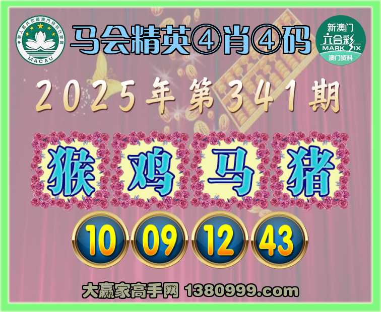 341期:【马会精英】 🥼④肖④码🥼【猴鸡马猪】【10.09.12.43】开:鼠06错