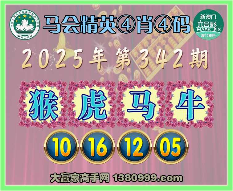 342期:【马会精英】 🥼④肖④码🥼【猴虎马牛】【10.16.12.05】开:虎04准