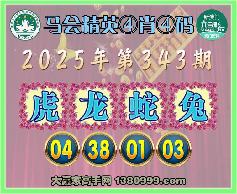343期:【马会精英】 🥼④肖④码🥼【虎龙蛇兔】【04.38.01.03】开:龙38准