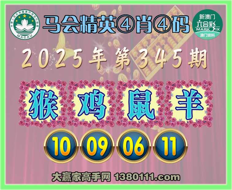 345期:【马会精英】 🥼④肖④码🥼【猴鸡鼠羊】【10.09.06.11】开:马24错