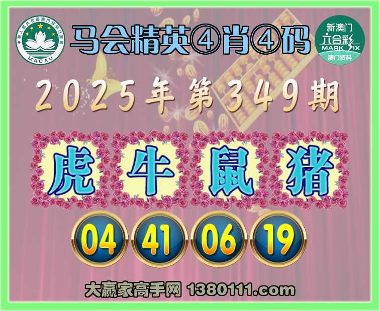 349期:【马会精英】 🥼④肖④码🥼【虎牛鼠猪】【04.41.06.19】开:猴22错