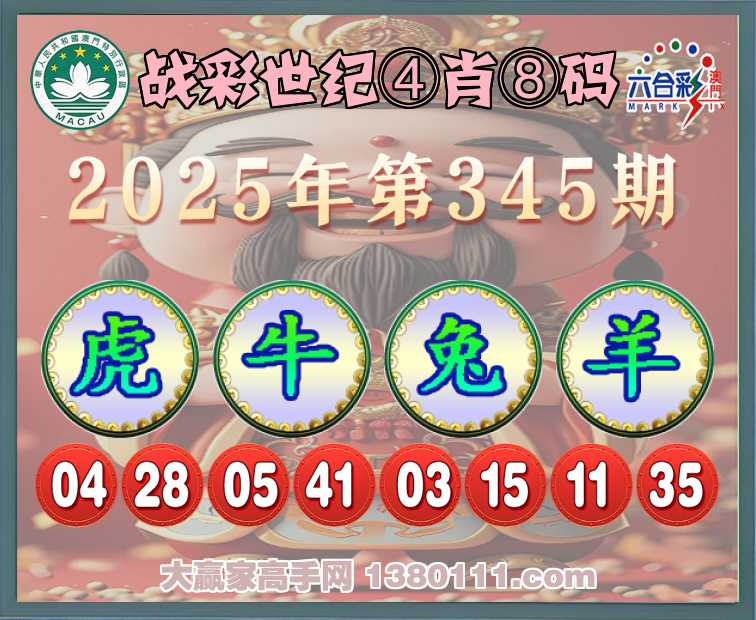 345期:『战彩世纪』 🥠④肖⑧码🥠【虎牛兔羊】开:马24错