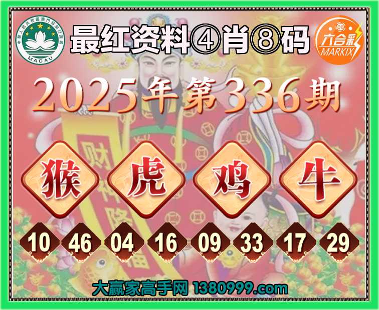 336期: 🥠『最红资料』 🥠④肖⑧码🥠【猴虎鸡牛】开:牛17准