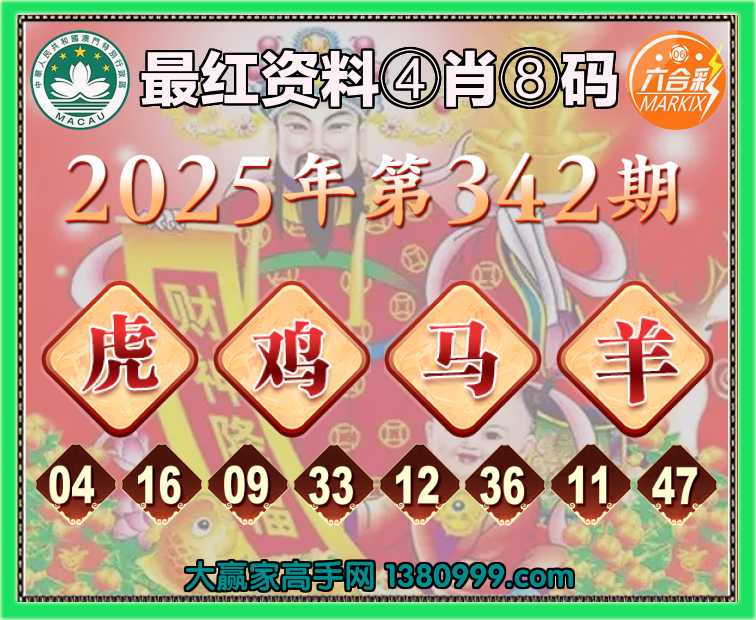 342期: 🥠『最红资料』 🥠④肖⑧码🥠【虎鸡马羊】开:虎04准