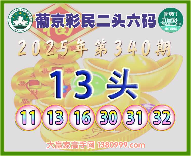 340期:《葡京彩民》 🤡二头六码🤡【13头】开:虎16准