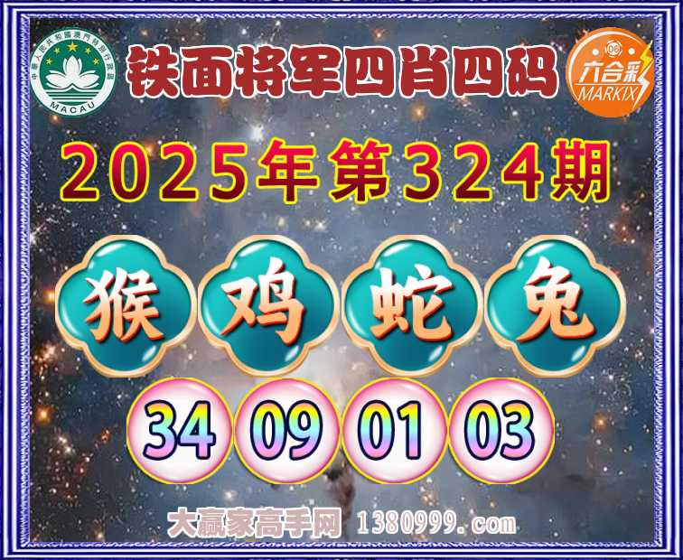 324期: 铁面将军 🍖四肖四码🍖【猴鸡蛇兔】【34.09.01.03】开:兔15准