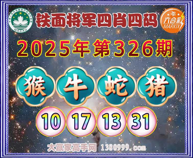 326期: 铁面将军 🍖四肖四码🍖【猴牛蛇猪】【10.17.13.31】开:猪19准