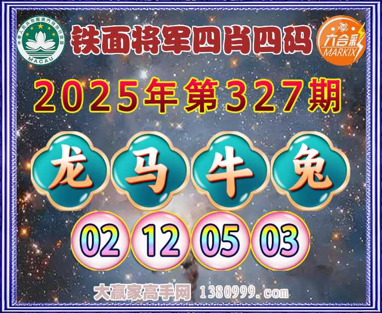 327期: 铁面将军 🍖四肖四码🍖【龙马牛兔】【02.12.05.03】开:蛇37错