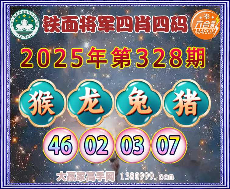 328期: 铁面将军 🍖四肖四码🍖【猴龙兔猪】【46.02.03.07】开:兔03准