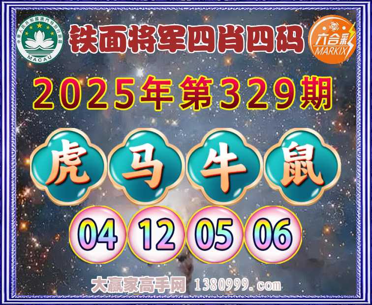 329期: 铁面将军 🍖四肖四码🍖【虎马牛鼠】【04.12.05.06】开:牛17准