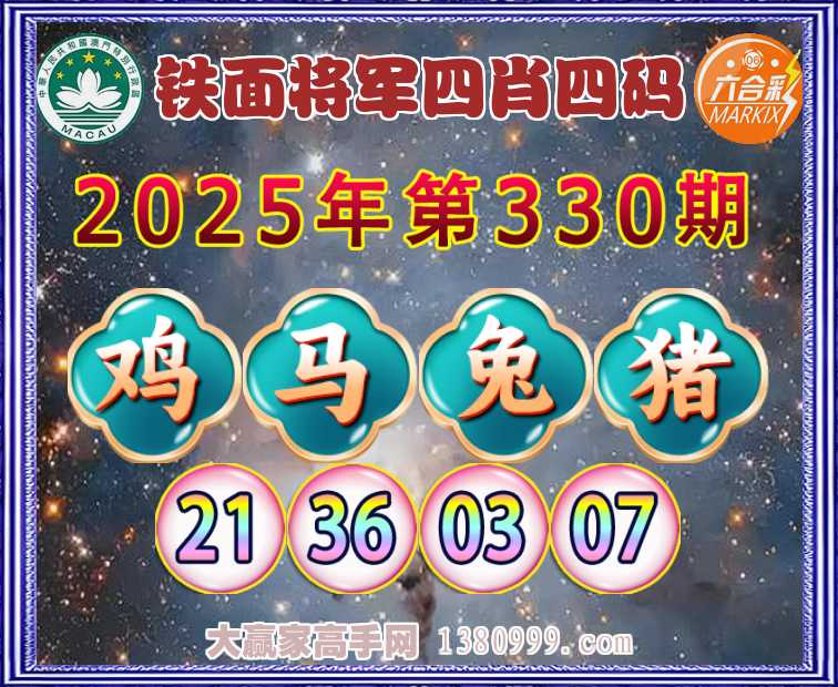 330期: 铁面将军 🍖四肖四码🍖【鸡马兔猪】【21.36.03.07】开:马36准