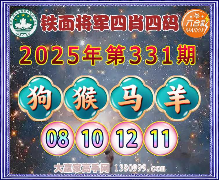 331期: 铁面将军 🍖四肖四码🍖【狗猴马羊】【08.10.12.11】开:龙26错