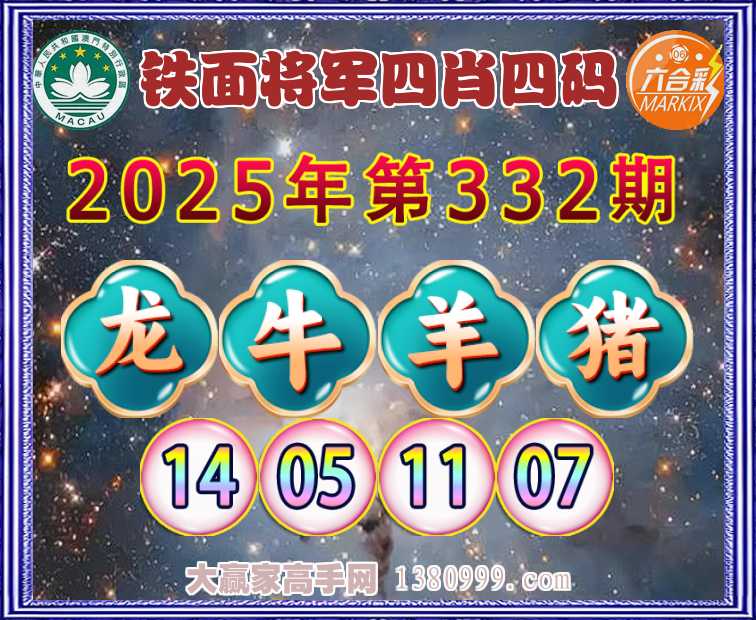 332期: 铁面将军 🍖四肖四码🍖【龙牛羊猪】【14.05.11.07】开:龙26准