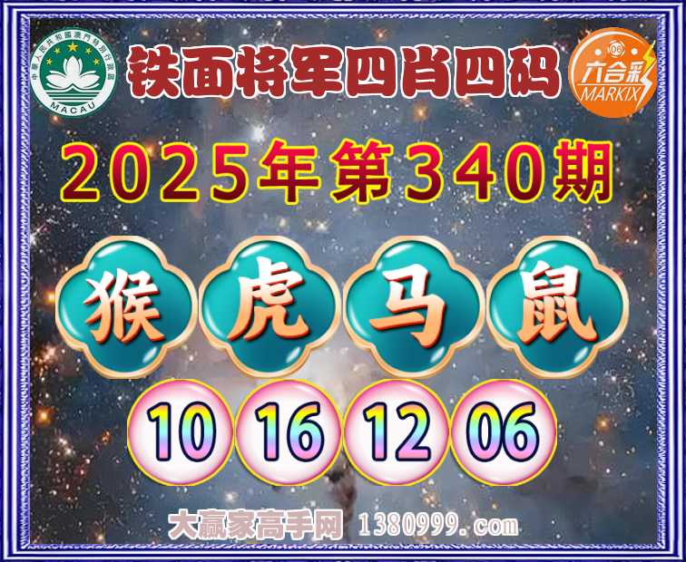 340期: 铁面将军 🍖四肖四码🍖【猴虎马鼠】【10.16.12.06】开:虎16准