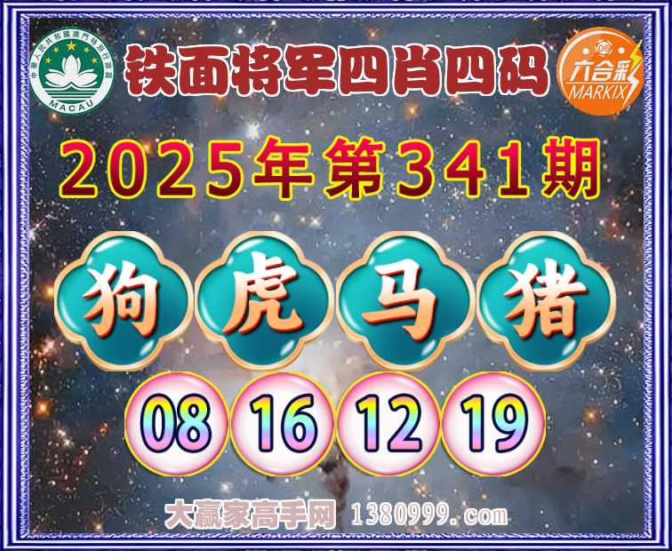 341期: 铁面将军 🍖四肖四码🍖【狗虎马猪】【08.16.12.19】开:鼠06错