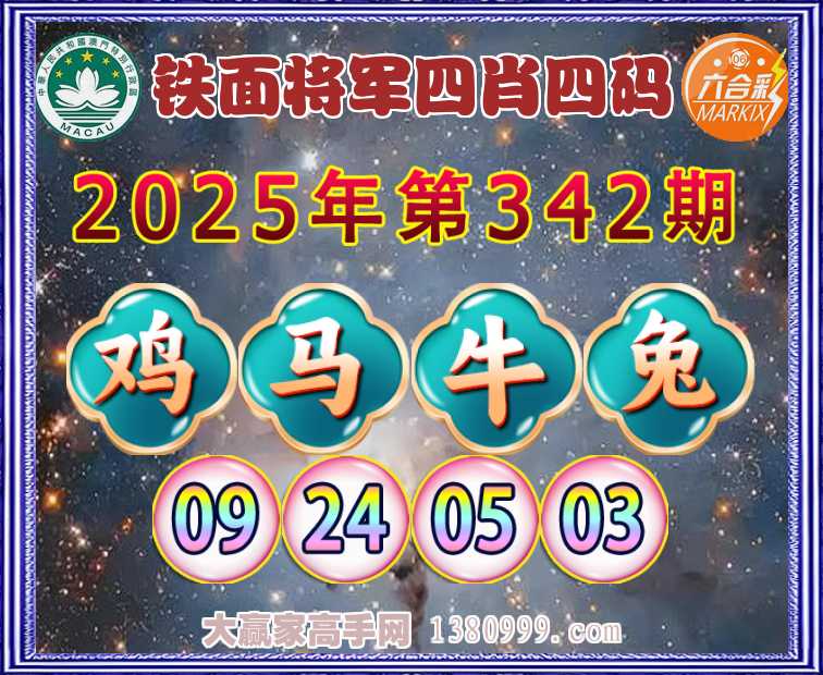 342期: 铁面将军 🍖四肖四码🍖【鸡马牛兔】【09.24.05.03】开:虎04错