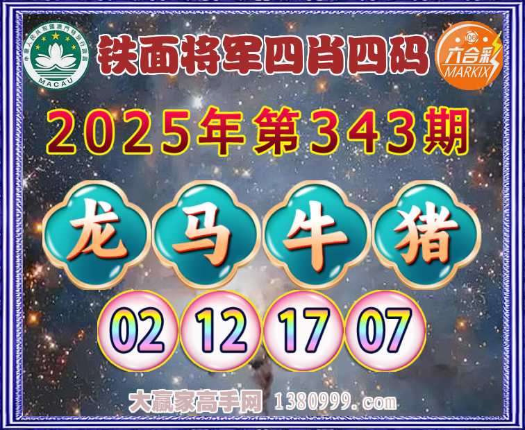 343期: 铁面将军 🍖四肖四码🍖【龙马牛猪】【02.12.17.07】开:龙38准