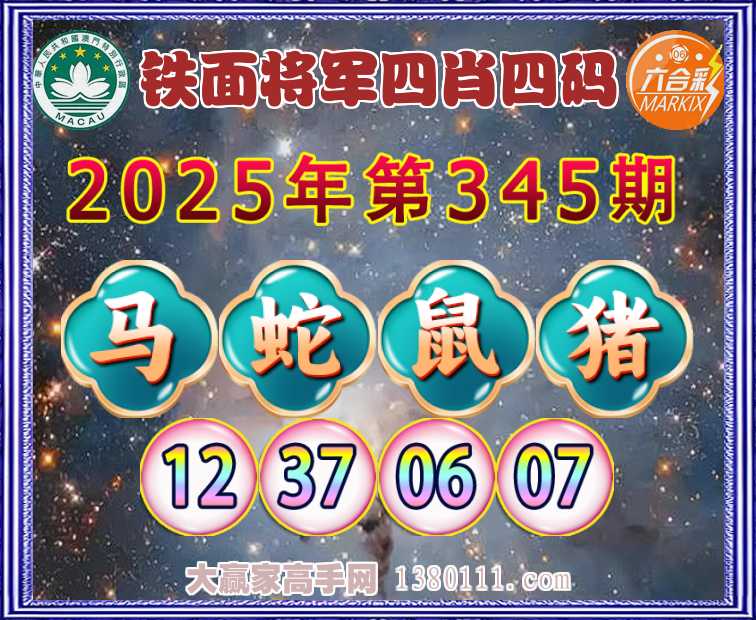 345期: 铁面将军 🍖四肖四码🍖【马蛇鼠猪】【12.37.06.07】开:马24准