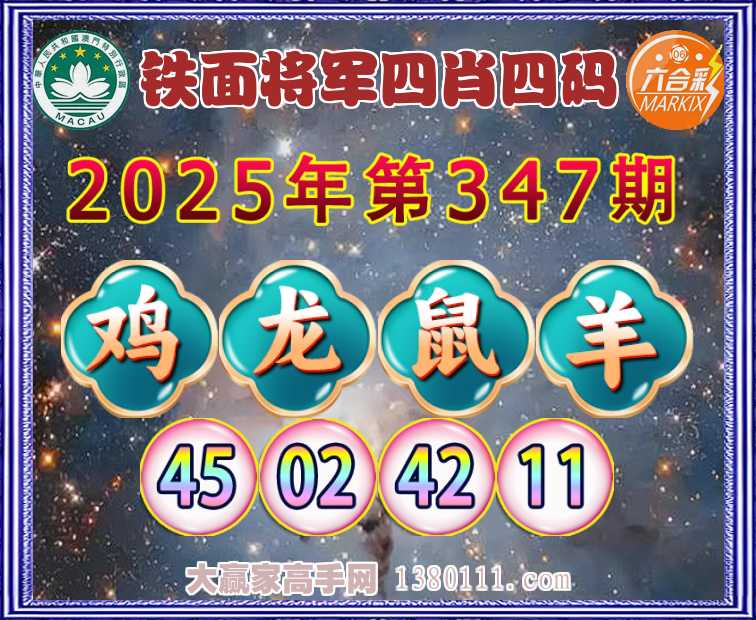 347期: 铁面将军 🍖四肖四码🍖【鸡龙鼠羊】【45.02.42.11】开:蛇13错