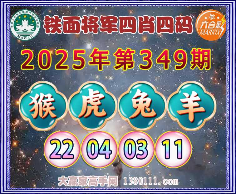 349期: 铁面将军 🍖四肖四码🍖【猴虎兔羊】【22.04.03.11】开:猴22准