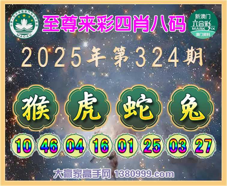 324期: 🥫《至尊来彩》 🥫四肖八码🥫【猴虎蛇兔】开:兔15准