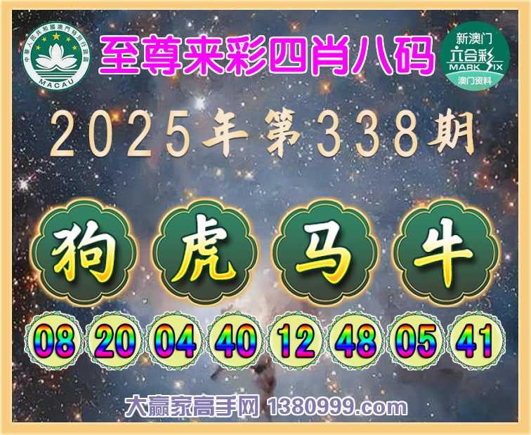 338期: 🥫《至尊来彩》 🥫四肖八码🥫【狗虎马牛】开:狗08准