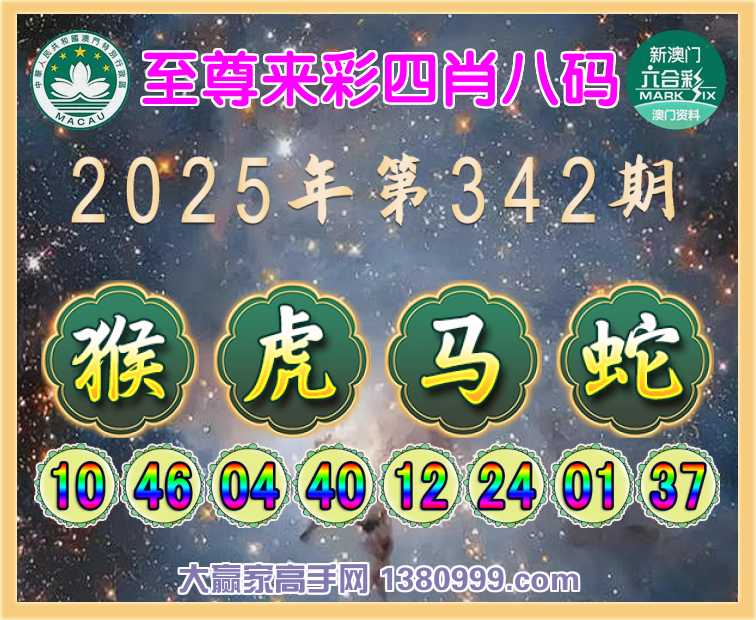 342期: 🥫《至尊来彩》 🥫四肖八码🥫【猴虎马蛇】开:虎04准