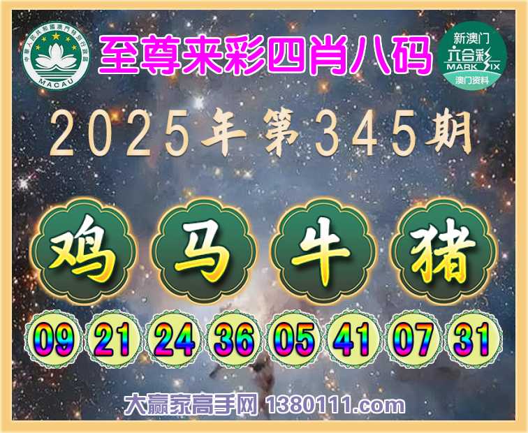 345期: 🥫《至尊来彩》 🥫四肖八码🥫【鸡马牛猪】开:马24准