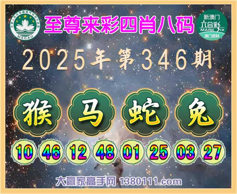 346期: 🥫《至尊来彩》 🥫四肖八码🥫【猴马蛇兔】开:兔03准