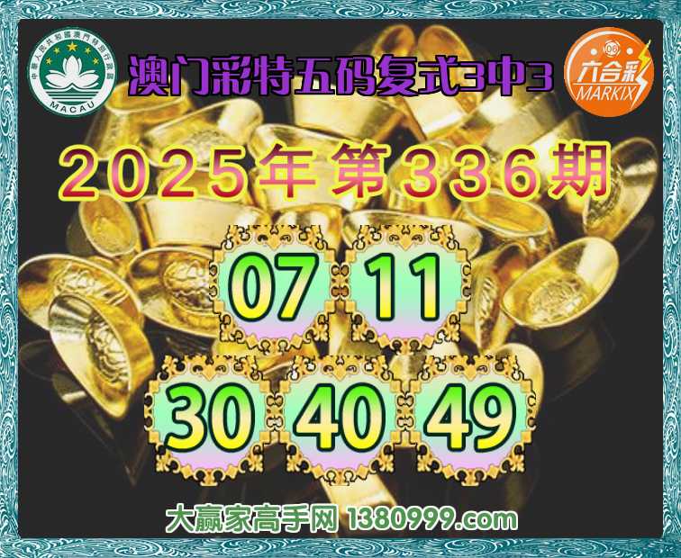 336期:《澳门彩特》 🍏五码复式3中3🍏