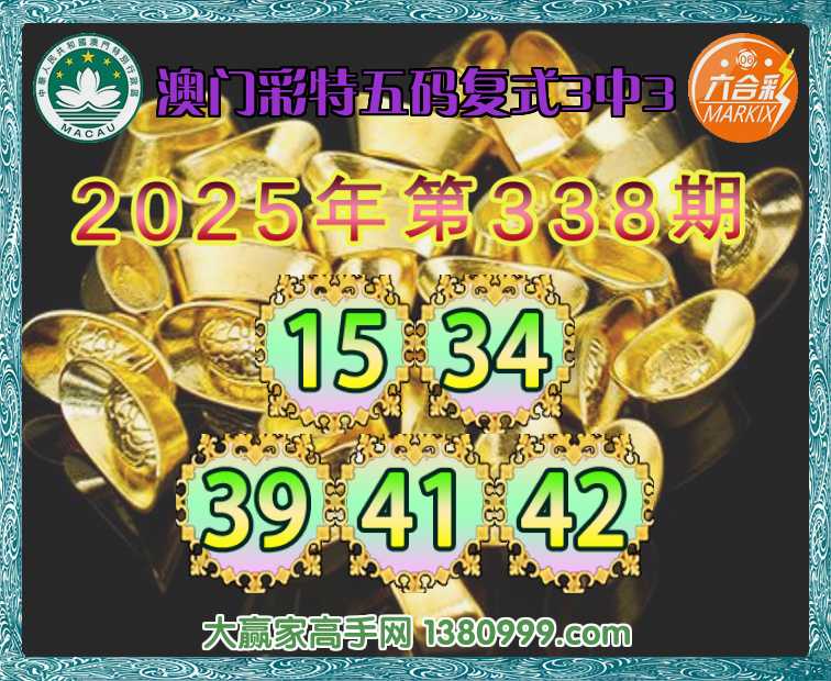 338期:《澳门彩特》 🍏五码复式3中3🍏