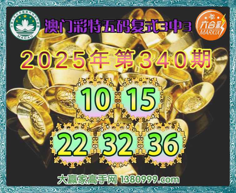 340期:《澳门彩特》 🍏五码复式3中3🍏