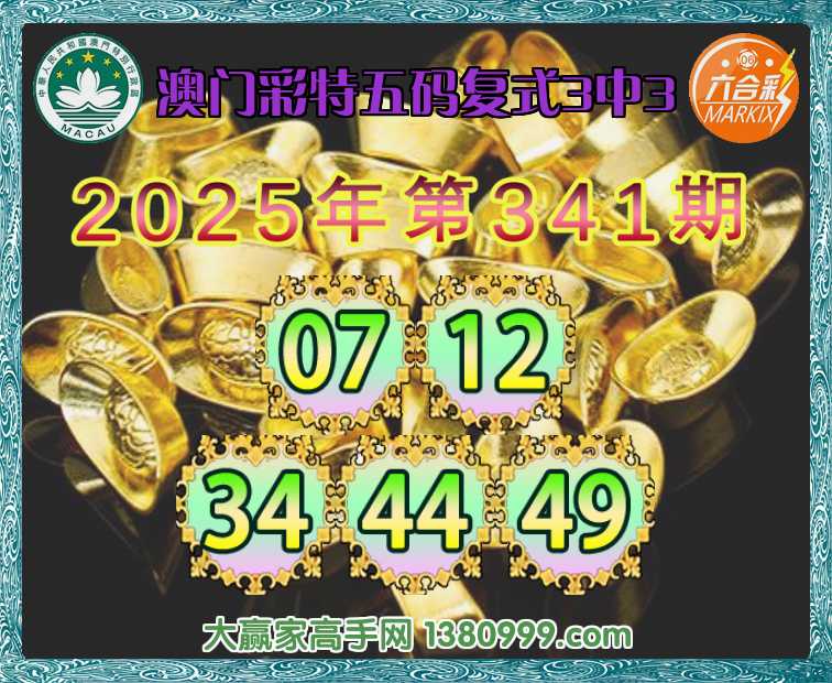344期:《澳门彩特》 🍏五码复式3中3🍏