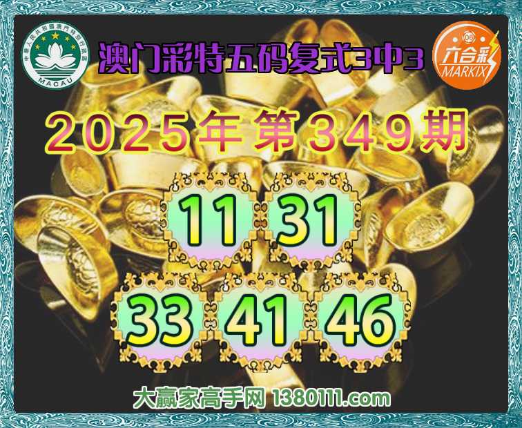 347期:《澳门彩特》 🍏五码复式3中3🍏