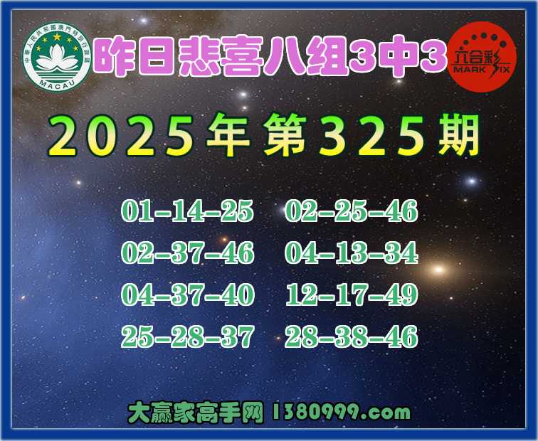 325期:『昨日悲喜』 🥓八组3中3🥓
