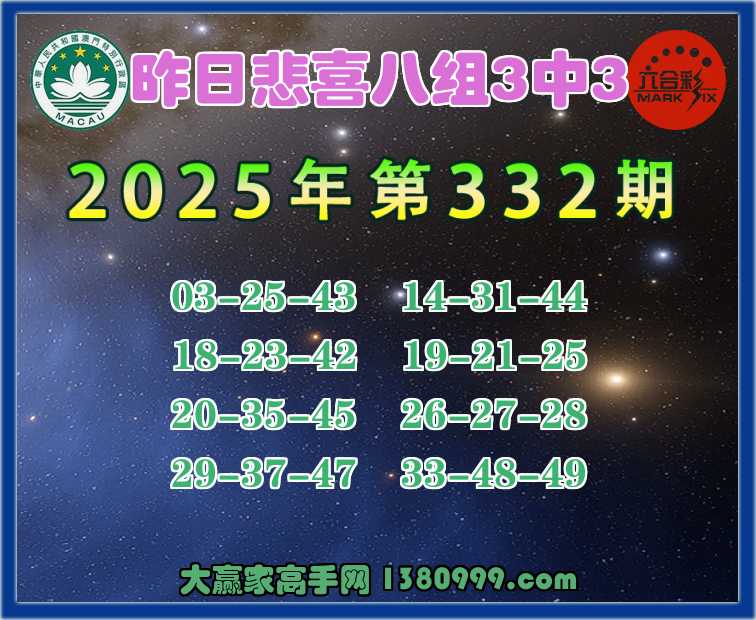 332期:『昨日悲喜』 🥓八组3中3🥓