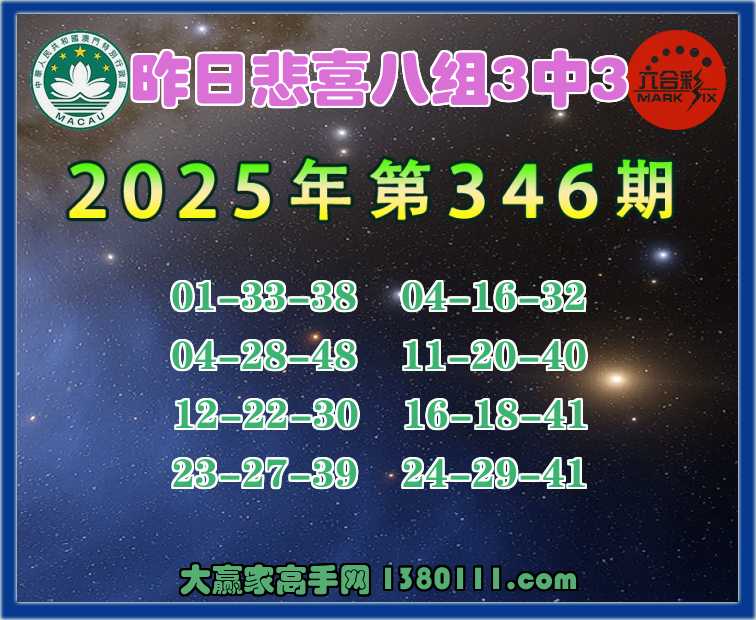 346期:『昨日悲喜』 🥓八组3中3🥓