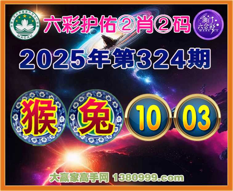 324期: 🪢『六彩护佑』 🪢②肖②码🪢【猴兔】【10.03】开:兔15准